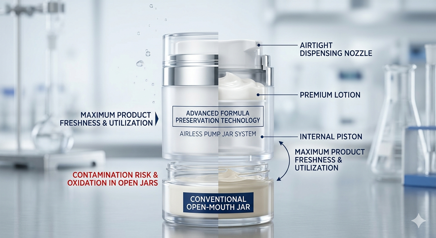Hlavním důvodem pro změnu odvětví je to bezvzduchové pumpičky výrazně prodlužuje trvanlivost přírodních produktů péče o pleť bez konzervačních látek tím, že eliminuje působení vzduchu. Protože spotřebitelé požadují „čistou krásu“ s menším množstvím syntetických stabilizátorů, musí obal převzít roli ochrany. Tradiční sklenice umožňují vstup kyslíku při každém otevření víčka, což vede k rychlé degradaci aktivních složek, jako je vitamín C, retinol a různé rostlinné oleje.