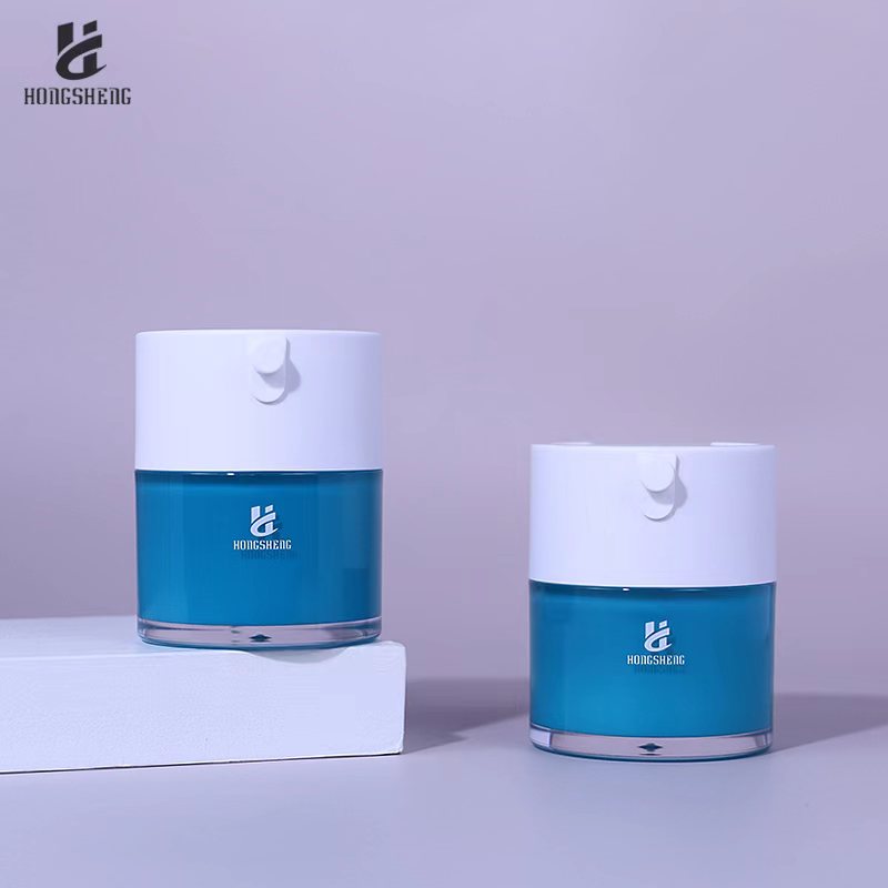V oblasti funkčních produktů péče o pleť a luxusní krásy zkušenost s těsněním a používáním lahví vakuové pumpy přímo ovlivňuje konzervační účinek aktivních složek v produktech a zkušenost spotřebitelů. HS-036 Modrá 30G 1oz plastová akrylová kosmetická nádoba Nádoby na krém Plastová nádoba na sérum pro kosmetiku a péči o pleť se stala ideálním obalovým řešením pro špičkové produkty, jako jsou esenční oleje, ampule a vysoce koncentrované esence se svou dvouvrstvou nepropustnou strukturou, širokým designem a přesnou technologií vakuového uchovávání.